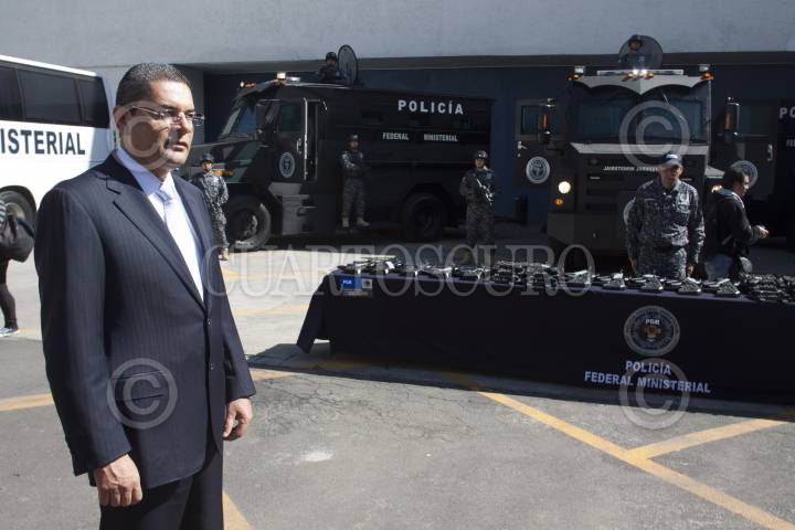 MÉXICO, D.F. 27NOVIEMBRE2012.- La Policía Federal Ministerial fue dotada con armas, vehículos blindados y un centro de comunicaciones, que representan una inversión de 200 mdp, sus instalaciones se ubican en la que fuera la sede de la desaparecida AFI. En la imagen Vidal Diáz Leal, comisario de la PFM. FOTO: MOISÉS PABLO /CUARTOSCURO.COM