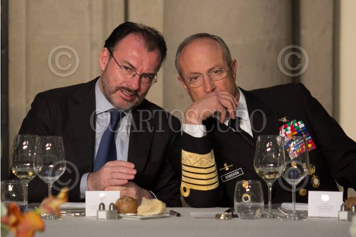 CIUDAD DE MÉXICO, 11ENERO2018.- Luis Videgaray Caso, secretario de Relaciones Exteriores, y Vidal Francisco Soberón Sanz, secretario de Marina, durante la Reunión de Embajadores y Cónsules de México, en Palacio Nacional. FOTO: GALO CAÑAS /CUARTOSCRO.COM