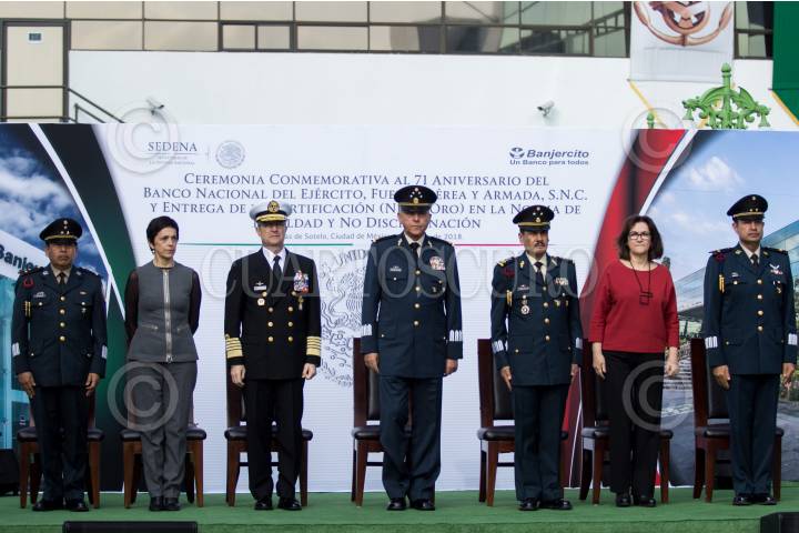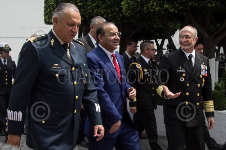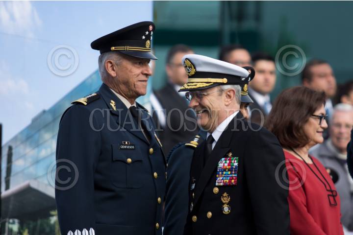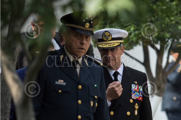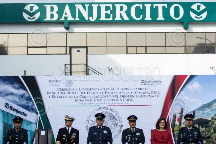 CIUDAD DE MÉXICO, 16JULIO2018.- Salvador Cienfuegos Zepeda, secretario de la Defensa Nacional, y Vidal Francisco Soberón Sanz, secretario de Marina, encabezaron la Ceremonia del “71 Aniversario de la Creación del Banco Nacional del Ejército, Fuerza Aérea y Armada, S.N.C.”, en las instalaciones de la Matriz de citada Institución Bancaria. FOTO: GALO CAÑAS /CUARTOSCURO.COM