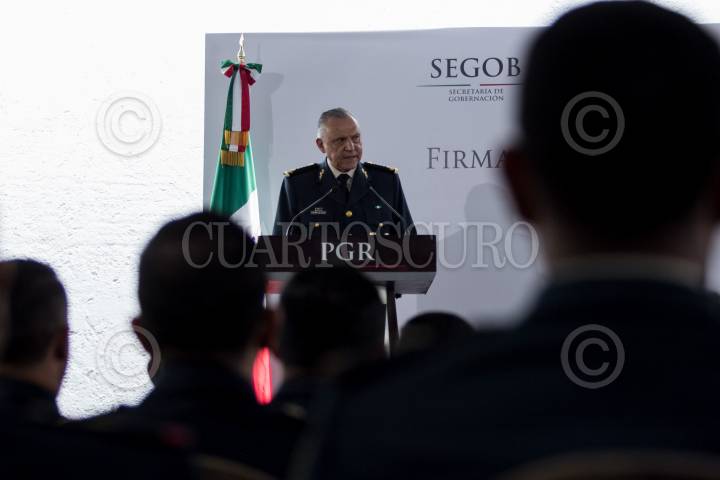 CIUDAD DE MÉXICO, 11JUNIO2018.- Salvador Cienfuegos Zepeda, secretario de la Defensa Nacional, durante la firma del “protocolo nacional de actuación destrucción de plantío ilícitos”, en las inmediaciones de la agencia de Investigación Criminal de la Procuraduría General de la República (PGR). FOTO: GALO CAÑAS /CUARTOSCURO.COM