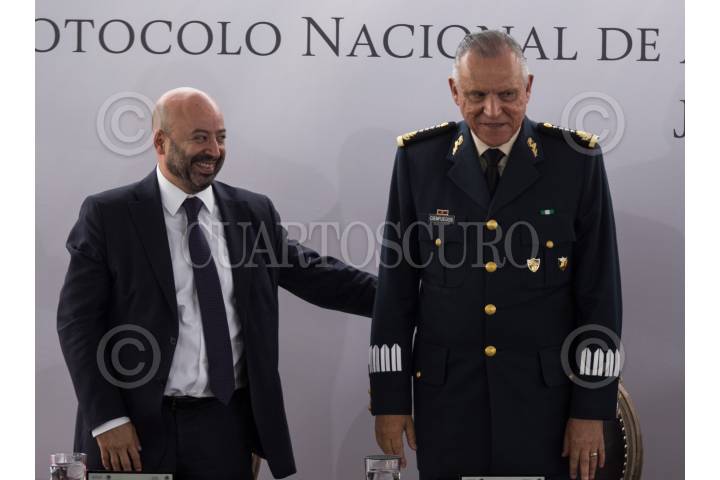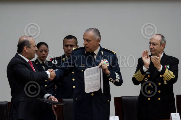 CIUDAD DE MÉXICO, 11JUNIO2018.- Renato Sales Heredia, comisionado nacional de Seguridad, y Salvador Cienfuegos Zepeda, secretario de la Defensa Nacional, durante la firma del “protocolo nacional de actuación destrucción de plantío ilícitos”, en las inmediaciones de la agencia de Investigación Criminal de la Procuraduría General de la República (PGR). FOTO: GALO CAÑAS /CUARTOSCURO.COM