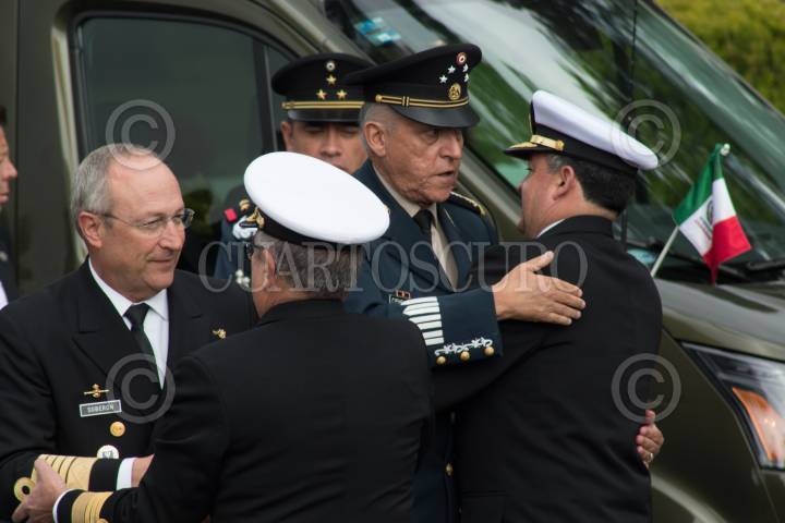 CIUDAD DE MÉXICO, 11JUNIO2018.- Salvador Cienfuegos Zepeda, secretario de la Defensa Nacional, y Vidal Francisco Soberón Sanz, secretario de Marina, durante su arribo a la firma del “protocolo nacional de actuación destrucción de plantío ilícitos”, en las inmediaciones de la agencia de Investigación Criminal de la Procuraduría General de la República (PGR). FOTO: GALO CAÑAS /CUARTOSCURO.COM