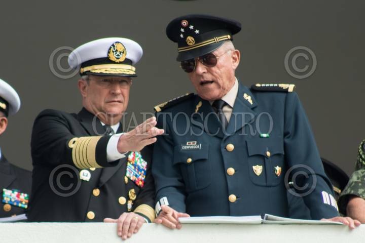 CIUDAD DE MÉXICO, 07SEPTIEMBRE2018.- El Secretario de la Defensa Nacional, Salvador Cienfuegos Zepeda y el Secretario de Marina, Vidal Francisco Soberón Sanz, dirigieron la Primera Revista General del Desfile Militar 2018, el cual se mostrará el próximo 16 de septiembre en la Plaza de la Constitución, con motivo del 208 aniversario de la Revolución de Independencia. FOTO: JACOBO ALBINO /CUARTOSCURO.COM