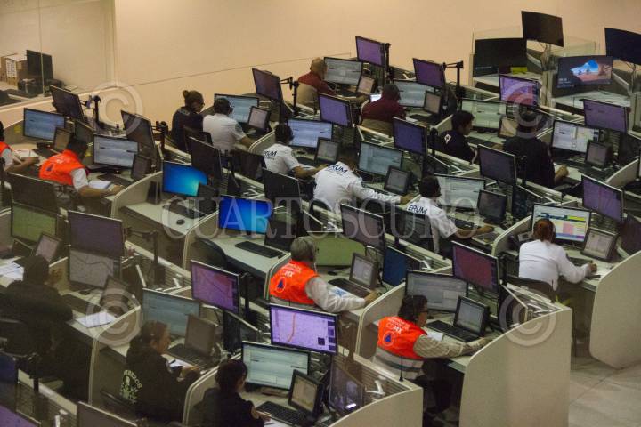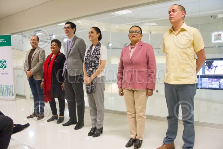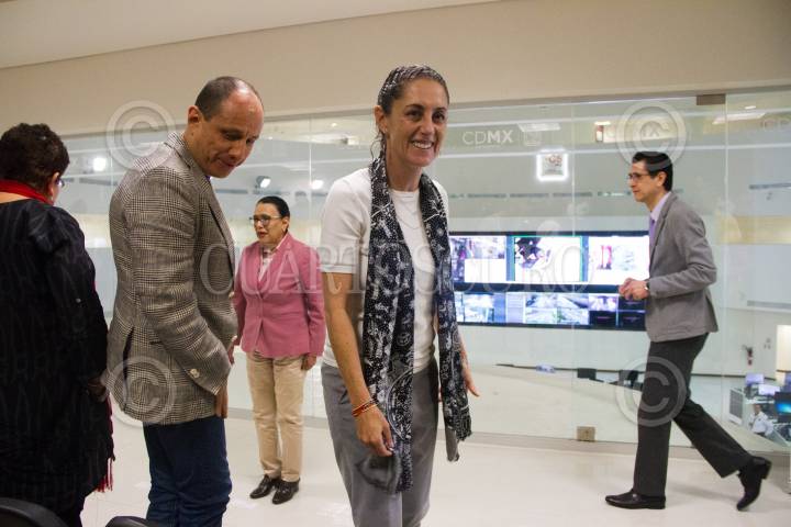 CIUDAD DE MÉXICO, 21JUNIO2019.- La jefa del Gobierno de la Ciudad, Claudia Sheinbaum, acudió al centro de video vigilancia C5, en la que se presento una alarma para reportar delitos en la Ciudad y obtener una respuesta inmediata, por parte de los cuerpos policiales. FOTO: VICTORIA VALTIERRA /CUARTOSCURO.COM