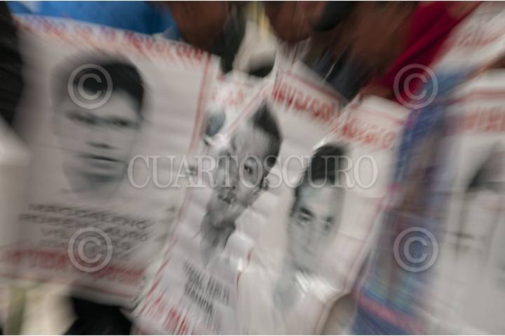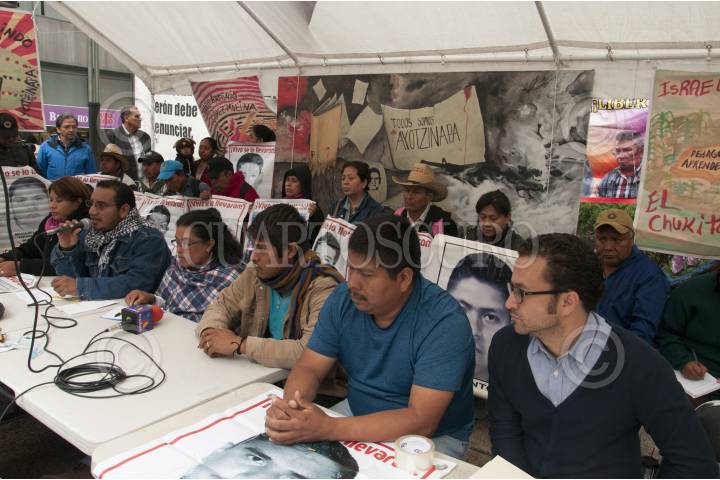 Conferencia de las madres y padres de los 43 normalistas desaparecidos en Ayotzinapa, Guerrero, en las inmediaciones del Centro Prodh, en posicionamiento al sexto informe del GIEI.