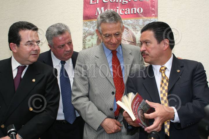 MÉXICO, D.F. 16MARZO2007.- Jorge Zermeño, presidente de la mesa directiva en San Lázaro, Carlos Navarrete, coordinador de la fracción perredista en la Cámara de Senadores, Fernando Pérez Correa y Francisco Arroyo Vieira, vicepresidente de la mesa directiva en la Cámara de Senadores al término de la presentación del libro El Congreso Mexicano en Ciudad Universitaria. FOTO: PAOLA HIDALGO/CUARTOSCURO.COM