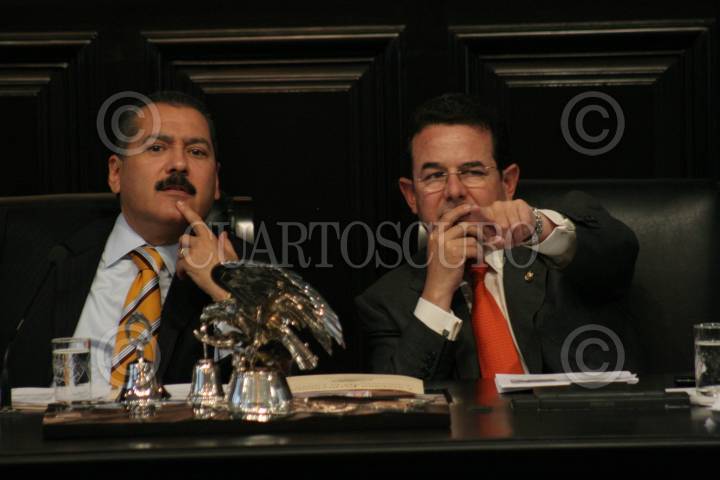 MÉXICO, D.F. 15MARZO2007.- El presidente de la mesa directiva Manlio Fabio Beltrones y Francisco Arroyo Vieira al incio de la sesión en la Cámara de Senadores. FOTO: PAOLA HIDALGO/CUARTOSCURO.COM
