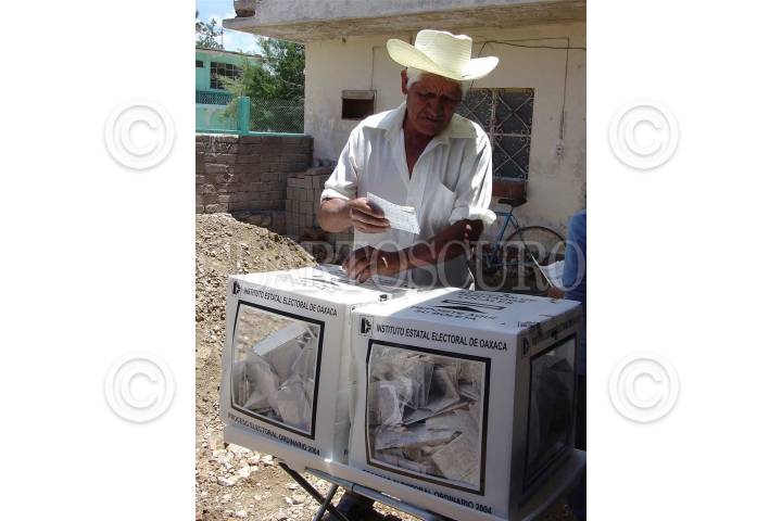 SAN PEDRO IXTLAHUACA OAXACA01AGOSTO2004.- Después de realizar sus compras del día una señora asiste a emitir su voto. FOTO: Blanca Esthela Hernández/CUARTOSCURO.COM