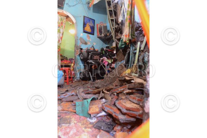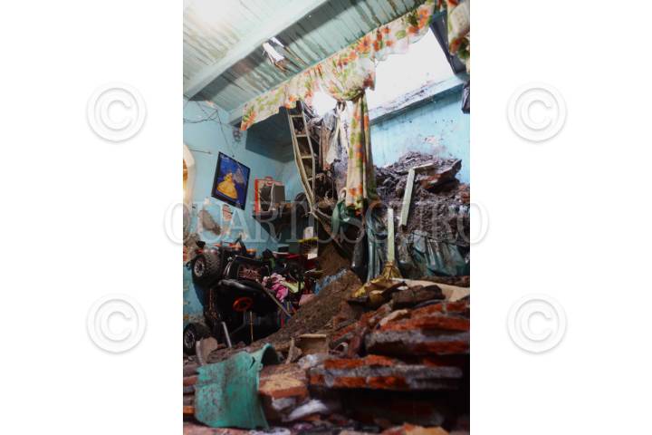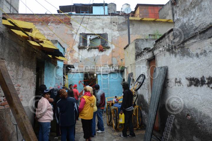 MÉXICO D.F. 12AGOSTO2013.- Parte del techo de un departamento de una vecindada ubicada en la esquina de Sastreria y Herreros de la colonia Morelos, se derrumbo a causa del reblandecimiento del adobe, material con el que fue construida esta obra hace casi un siglo. Del siniestro no se registraron personas lesionadas. Al lugar acudieron bomberos y personal de Protección Civil para valorar los daños y checar si el resto de los departamentos pueden seguir siendo habitados. FOTO: LUIS CARBAYO /CUARTOSCURO.COM