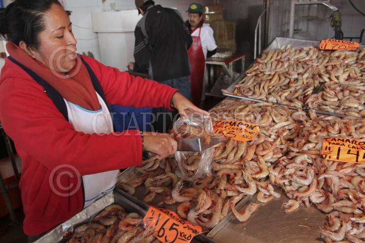 MÉXICO, D.F., 24DICIEMBRE2013.- Centenares de personas acuden al Mercado de la Viga donde se oferta la mayoría de productos procedentes del mar, para realizar la compra de la cena de navidad. FOTO: GUILLERMO PEREA /CUARTOSCURO.COM