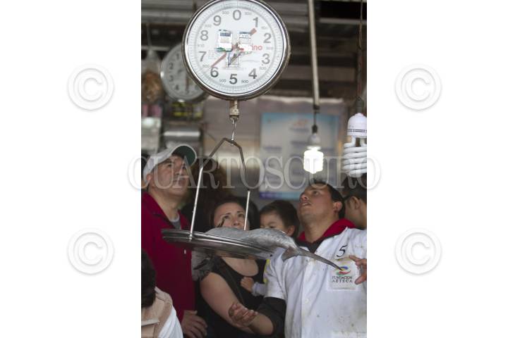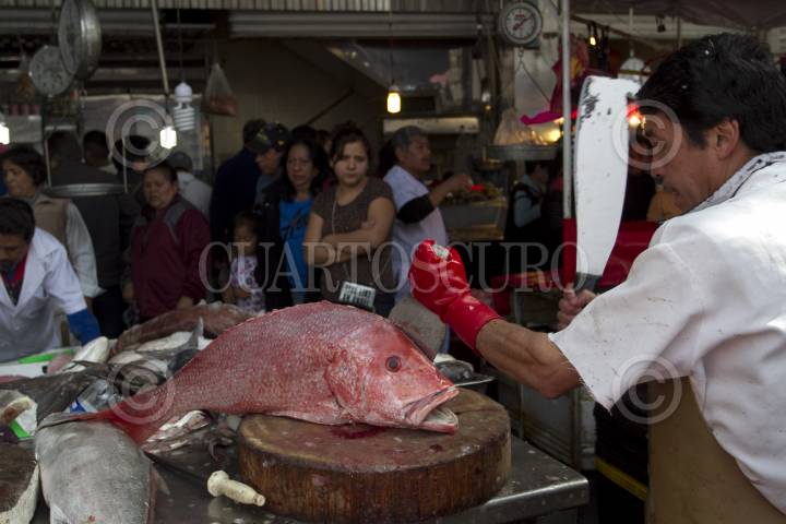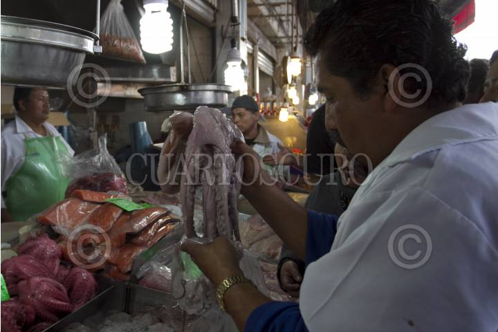 MÉXICO, D.F., 02ABRIL2015.- El Mercado La Nueva Viga, ubicado en la delegación Iztapalapa, es un espectáculo que comienza a las cuatro de la mañana con la descarga de peces de todo tamaño y forma, millones de ostiones y almejas, gigantescas mantarrayas, pequeños tiburones y universos de camarones. Cientos de camiones provenientes de todo el país llegan con unas 500 toneladas de alimentos –60 por ciento de la producción nacional pesquera–, que se concentrarán en el segundo mercado del mundo en cuanto a volúmenes (sólo superado por Tokio). FOTO: ISABEL MATEOS /CUARTOSCURO.COM