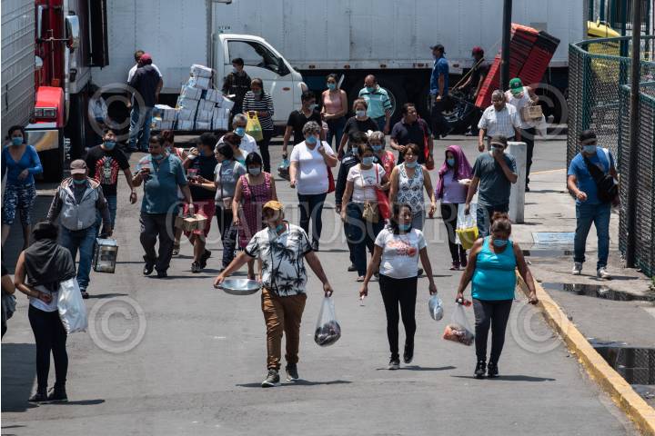 Autoridades implementaron un operativo que impide el acceso vehícular, y distribuyeron cubrebocas y gel antibacterial a las personas que asisten a realizar sus compras en el mercado "La Nueva Viga: Pescados y Mariscos" durante la temporada de cuaresma y "Viernes Santo" pese a que se encuentra activada la emergencia sanitaria por la pandemia de coronavirus.