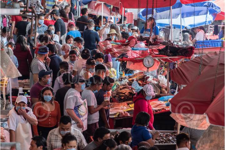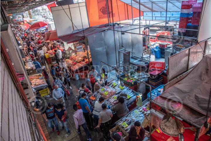 Operativo en el mercado "La Nueva Viga: Pescados y Mariscos" durante la temporada de cuaresma y "Viernes Santo" al que cientos de personas continúan asistiendo a realizar compras pese a que se encuentra activada la emergencia sanitaria por la pandemia de coronavirus.