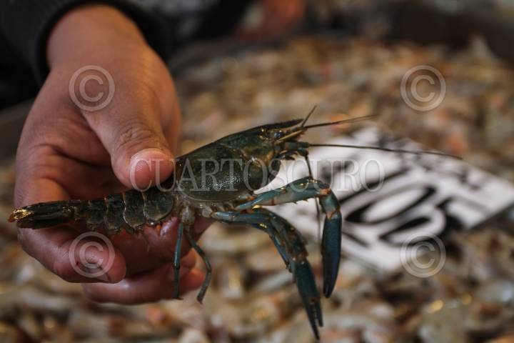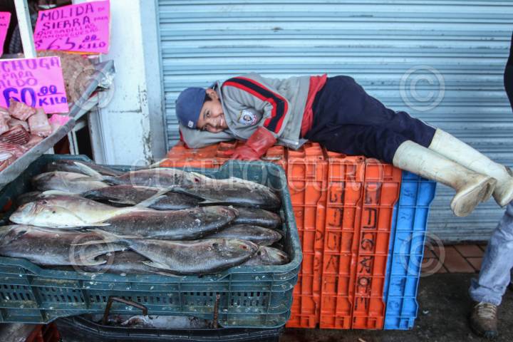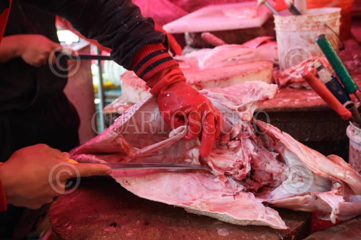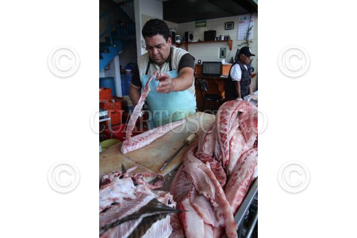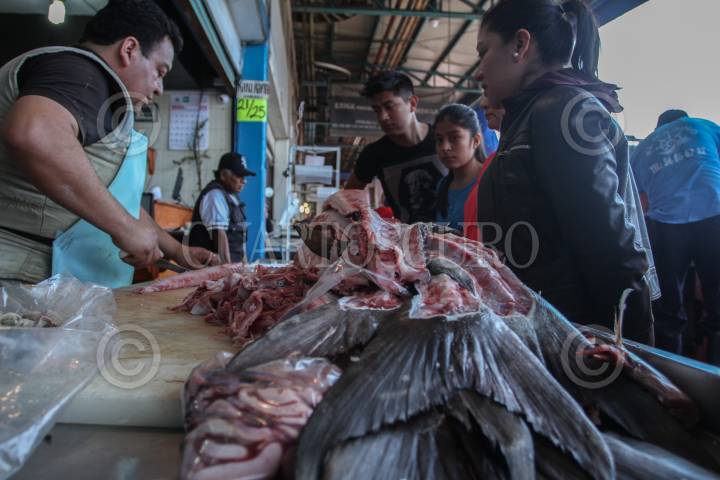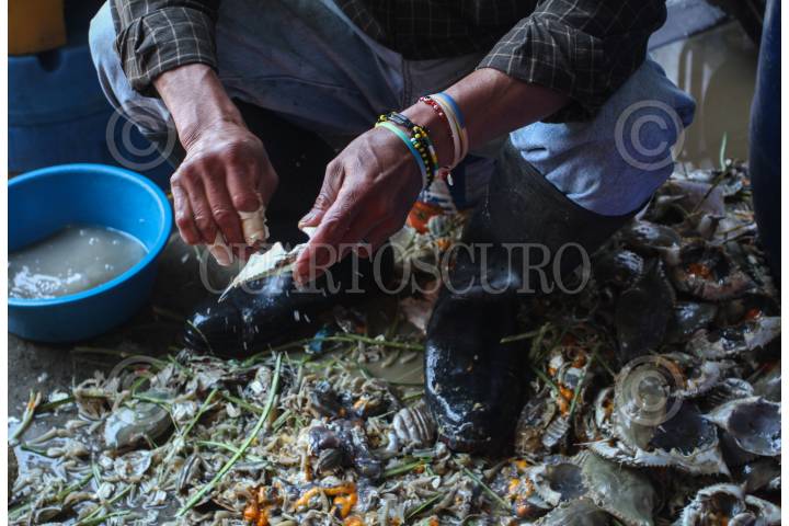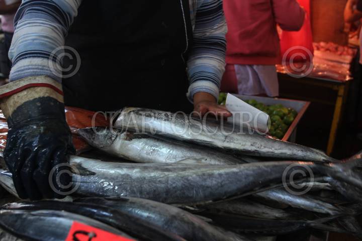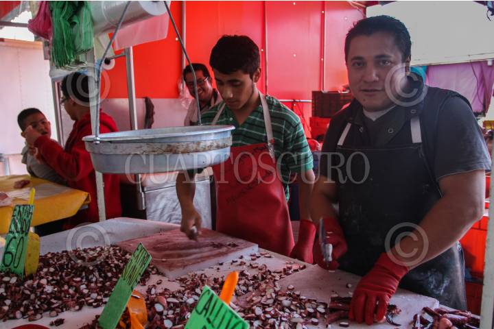 MÉXICO, D.F., 30MARZO2015.- El Mercado La Nueva Viga, ubicado en la delegación Iztapalapa, es un espectáculo que comienza a las cuatro de la mañana con la descarga de peces de todo tamaño y forma, millones de ostiones y almejas, gigantescas mantarrayas, pequeños tiburones y universos de camarones. Cientos de camiones provenientes de todo el país llegan con unas 500 toneladas de alimentos –60 por ciento de la producción nacional pesquera–, que se concentrarán en el segundo mercado del mundo en cuanto a volúmenes (sólo superado por Tokio). FOTO: ISABEL MATEOS /CUARTOSCURO.COM