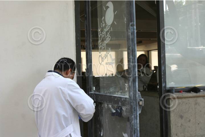 MEXICO D.F. 10MARZO2006.- Empleados de un restaurante, ubicado en avenida Cuauhtemoc y Romero de de Terreros colinia del Valle encontraron al vigilante nocturno muerto en el interior del negocio. Peritos de la PGJDF realizan las investigaciones en el lugar de los hechos. FOTO: Pedro Marrufo/CUARTOSCURO.COM