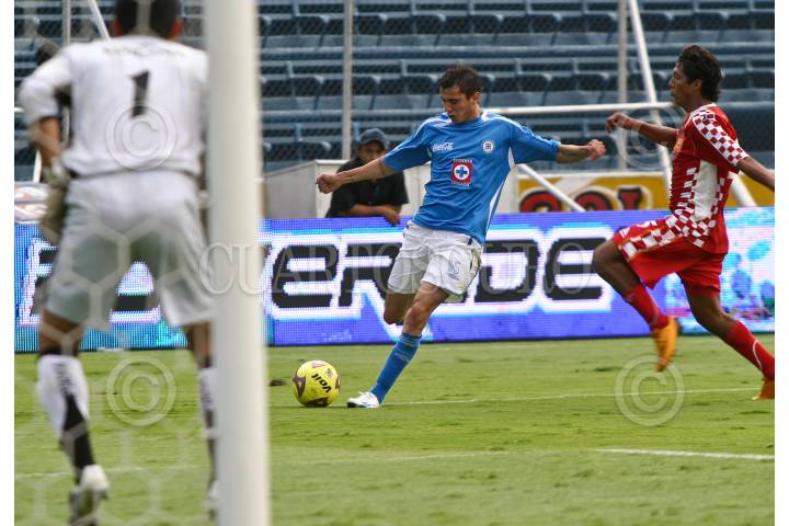 MÉXICO, D.F., 09AGOSTO2008.- Nicolás Ignacio Vigneri tira hacia la porteria en el encuentro contra el Tecos de la UAG en el partido de la jornada 3 el cual los cementeros ganaron 2 goles a cero. FOTO: RODOLFO ANGULO/CUARTOSCURO.COM