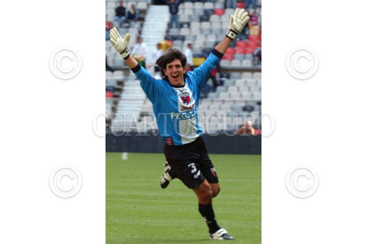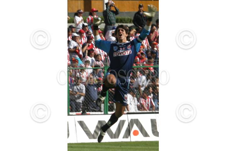 MEXICO, D.F. 16ENERO2005.- Federico Vilar, portero de los potros del Atlante festejó la anotación del "Chamagol" durante su encuentro con la Chivas Rayas del Guadalajara en donde el marcador fue empate a un gol. FOTO: Nelly Salas/CUARTOSCURO.COM