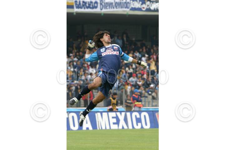 MEXICO, D.F. 23ENERO2005.- Federico Vilar, portero de Atlante festejó el gol de su equipo en el juego de la jornada 2 del torneo de clausura 2005, donde Atlante venció un gol por cero a Pumas de la UNAM, en el estadio de Ciudad Universitaria. FOTO: Iván Stephens/CUARTOSCURO.COM