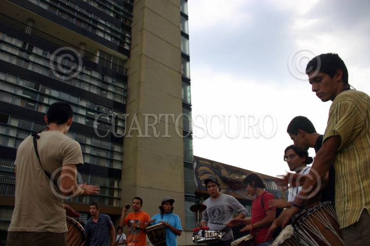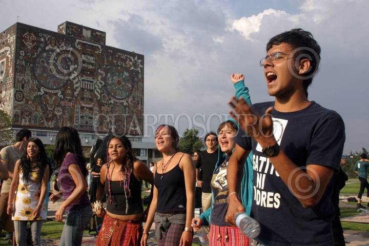 MEXICO, D.F. 29ABRIL2006.- Alumnos de la Escuela Nacional de Artes Plásticas se manifestaron frente a la torre de Rectoría en C.U. por la posible reelección de su actual directora Luz del Carmen Vilchis. FOTO: Cristina Aguilar/CUARTOSCURO.COM