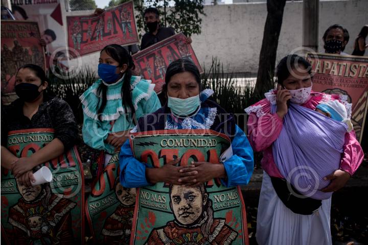 Bloquean Otomíes Av. México Coyoacan a la altura del INPI