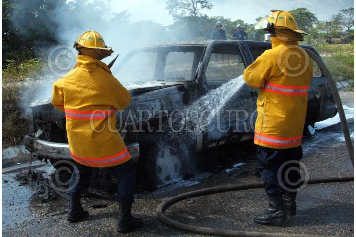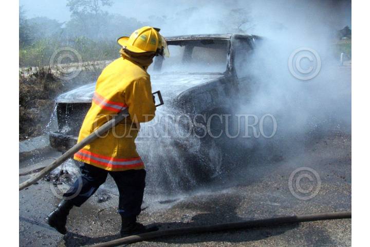 VILLAHERMOSA, TABASCO, 16NOVIEMBRE2007.- Una camioneta tipo Suburban ardio completamente cuando en su interior ocurrio un corto circuito.La unidad circulaba sobre la carretera federal Villahermosa-Macuspana y se dice que recogería algunos albergados en el municipio de Macuspana. FOTO: MARCO POLO GUZMÁN HERNÁNDEZ/CUARTOSCURO.COM