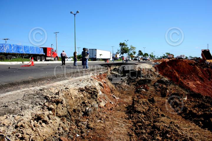 VILLAHERMOSA, TABASCO, 14DICIEMBRE2007.-Deslave se registro sobre la carretera federal Villahermosa-Macuspana, lo que provoca que tan solo haya un carril en ambos sentidos de la autopista. FOTO: MARCO POLO GUZMÁN HERNÁNDEZ/CUARTOSCURO.COM