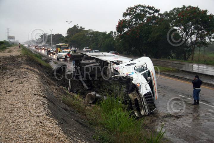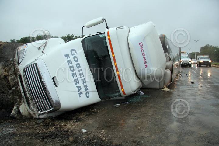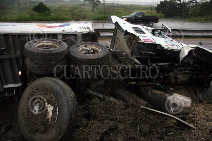 16ENERO2009.- Un trailer del gobierno federal perteneciente al programa de DICONSA cargado con maíz sufrió una volcadura tras ser impactado por una unidad compacta de la Procuraduría General de Justicia del estado de Tabasco. En el hecho de transito terrestre resultaron gravemente heridos seis personas sobre la carretera federal Villahermosa-Macuspana a la altura del poblado Dos Montes. FOTO: MARCO POLO GUZMÁN HERNÁNDEZ/CUARTOSCURO.COM