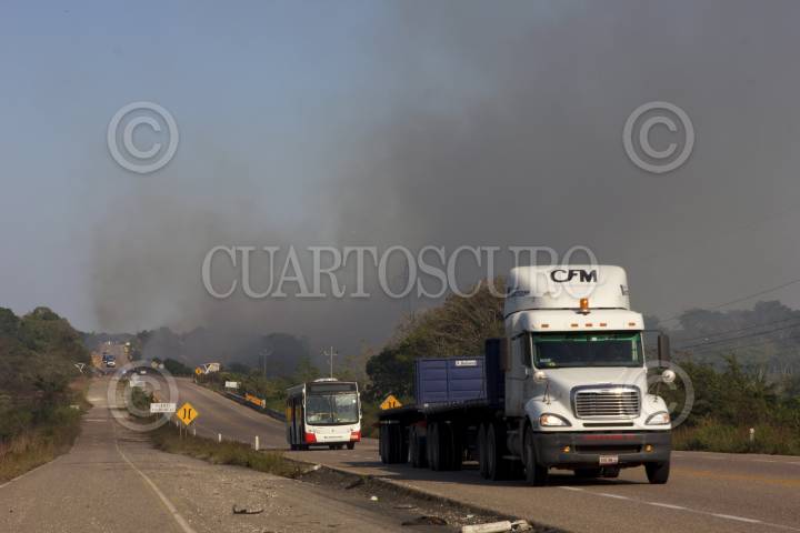 MACUSPANA, TABASCO, 09MARZO2013.- Incendios provocados por distintos tramos carreteros sobre la carretera federal Villahermosa-Macuspana. La visibilidad sobre estos puntos es de regular a mala para los automovilistas que transitan. FOTO: MARCO POLO GUZMÁN HERNÁNDEZ /CUARTOSCURO.COM