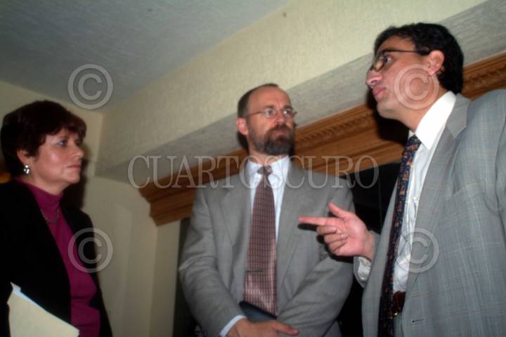 Alfonso Cervantes, Eugenia Diez Hidago y Francisco Villalon, presentaron un informe acerca de la situación de los derechos humanos en México, ante representantes de la ONU en México. FOTO: Nelly Salas/CUARTOSCURO.COM