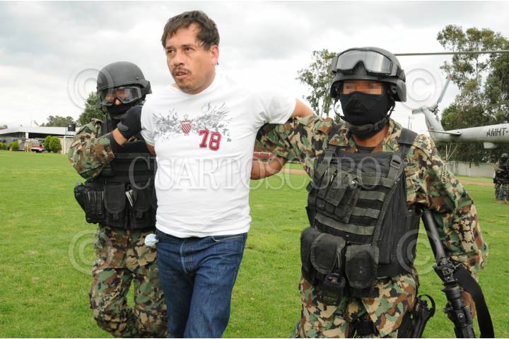 MÉXICO, D.F., 13SEPTIEMBRE2010.- Jesús Enrique Jurado Torres, escolta de Sergio Enrique Villarreal Barragán (a) "El Grande", quien es considerado como el principal operador de la organización criminal de los Beltrán Leyva, durante su traslado a la Ciudad de México el día de ayer por la tarde después de haber sido detenidos en el estado de Puebla. FOTO: ESPECIAL/CUARTOSCURO.COM