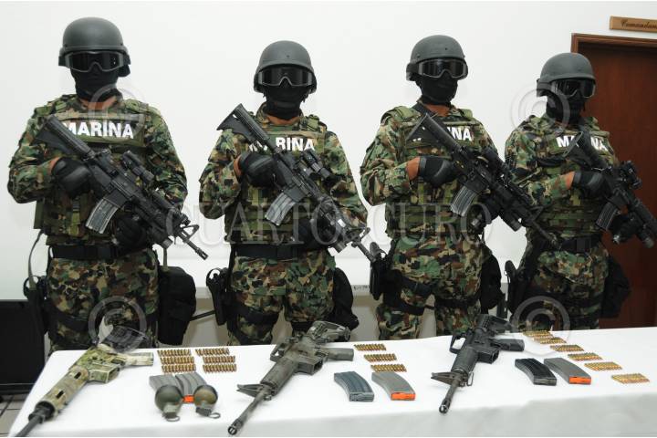 PUEBLA, PUEBLA, 12SEPTIEMBRE2010.- Alrededor de 30 elementos de la Infantería de Marina, realizaron un operativo en la zona residencial Puerta de Hierro, para capturar a 4 presuntos terratenientes del narcotraficante entre ellos Sergio Villarreal Barragán, "El Grande". FOTO: FRANCISCO GUASCO /CUARTOSCURO.COM