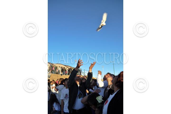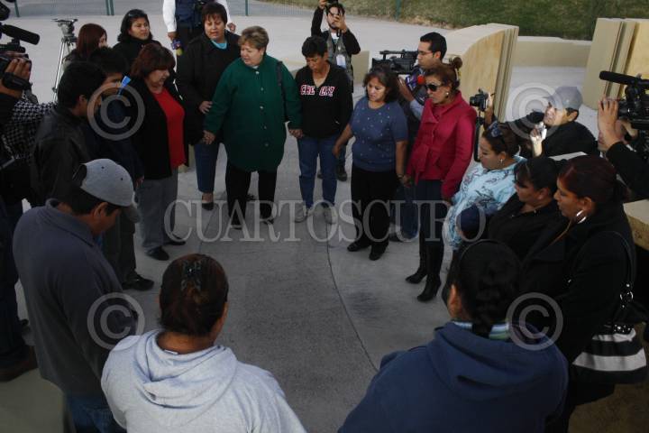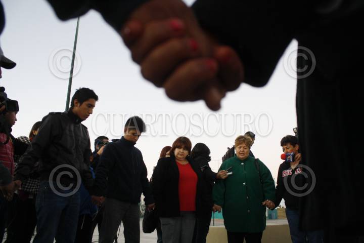 CIUDAD JUÁREZ, CHIHUAHUA, 06NOVIEMBRE2013.- Madres de familia de las víctimas de la masacre en Villas de Salvárcar en enero del 2010 se reunieron esta tarde en el memorial que se ubica en la colonia del siniestro para recordar a sus jóvenes. Las madres de familia se dieron cita alrededor de las 17:00 horas en el memorial que se ubica en el Deportivo Villas del Salvárcar, donde colocaron las fotografías de las víctimas y ofrecieron oración a sus jóvenes que perdieron la vida en ataque con armas de fuego en enero del 2010. Posteriormente, las madres se manifestaron por la liberación de Israel Arzate, a quien se le acusó de ser el responsable de la masacre de Villas de Salvárcar. FOTO: NACHO RUIZ /CUARTOSCURO.COM