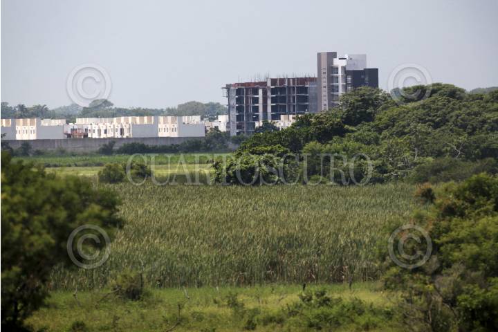 VERACRUZ, VERACRUZ, 08AGOSTO2014.- El complejo habitacional desarrollado por Casas Ara, el cual fungiría como villas para los atletas de diversos países que competirán durante los Juegos Centroamericanos y del Caribe 2014 se encuentra inconcluso, por lo que autoridades estatales y del comité organizador acordaron cancelar el convenio y hospedar a los competidores en hoteles de la conurbación. Las obras continúan pese a la oposición de ambientalistas que afirman que el ecosistema se ve gravemente afectado debido a que se construye en un humedal que a su vez funge como vaso regulador. Los habitantes de las zonas aledañas temen que el riesgo de inundación sea mayor en temporada de lluvias. FOTO: FÉLIX MÁRQUEZ /CUARTOSCURO.COM