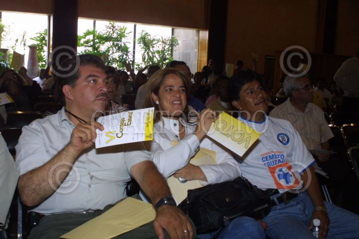 MEXICO, D.F. 18JUNIO2005.- Los asambleistas Alfredo Hernández Raigosa y Lorena Villavicencio platican con sus similares durante la reunión del VI Consejo Estatal del PRD. FOTO: Alejandro Arvizu/CUARTOSCURO.COM