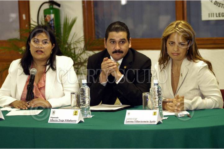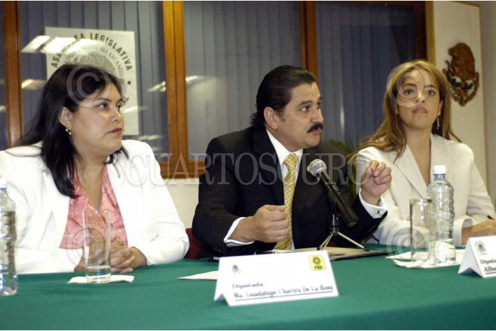 MEXICO D.F. 20JUNIO2005.- En conferencia de prensa los diputados locales del PRD Guadalupe Chavira, Alberto Trejo Y Lorena Villavicencio, denunciaron un presunto fraude en la delegación Milpa Alta, al pagar obras inconclusas. FOTO: CUARTOSCURO.COM
