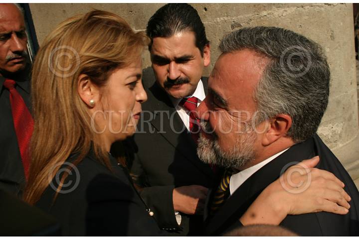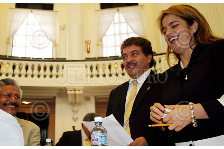 MEXICO, DF 29JULIO2005.- Los asambleistas Lorena Villavicencio y Mauricio López reciben a Alejandro Encinas, virtual nuevo jefe de gobierno del distrito federal luego de que fuera aprobado el dictamen que lo designa como tal en la asamble de la ciudad. FOTO: Miguel Dimayuga/CUARTOSCURO.COM