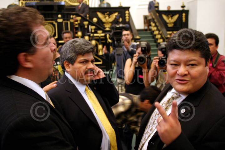 MEXICO, DF 29JULIO2005.- Los asambleistas perredistas Alfredo Hernández Raigosa, Francisco Chiguil y Carlos Reyez Gamíz durante la sesión donde se aprobó el dictamen que designa a Alejandro Encinas como nuevo jefe de gobierno. FOTO: Miguel Dimayuga/CUARTOSCURO.COM