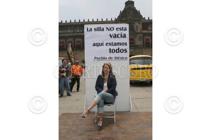 MEXICO, D.F. 23ABRIL2006.- Lorena Villavicencio, diputada local, comenzó una campaña en el zócalo capitalino, sobre la silla vacía que dejarán al candidato de la alianza por el Bien de Todos, en el debate de los presidencial. FOTO: Nelly Salas/CUARTOSCURO.COM