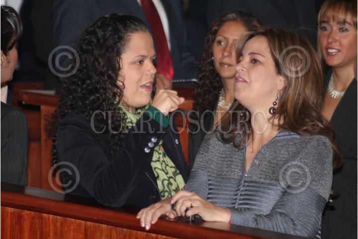 MÉXICO, D.F., 16DICIEMBRE2008.- Mariana Gomez del Campo presidenta del Pan en el D.F. y Lorena Villavicencio durante la cesión solemne que se realizo en la Asamblea Legislativa del Distrito Federal en conmemoración a su 20 aniversario. FOTO: RICARDO CASTELAN/CUARTOSCURO.COM