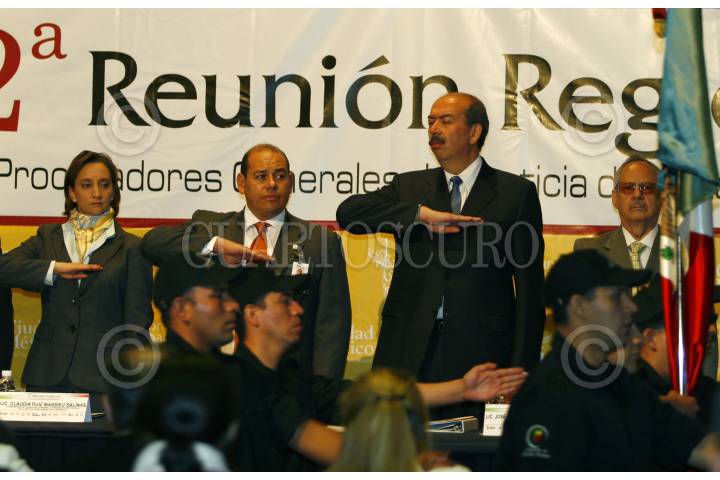 MÉXICO, D.F. 25OCTUBRE2007.- Claudia Ruiz Massieu, coordinadora de planeación institucional de la PGR, Rodolfo Félix Cárdenas, procurador de justicia del Distrito Federal, José Ángel Ávila, secretario de gobierno local y Abel Villicaña Estrada, procurador de EDOMEX durante la Reunión Regional de Procuradores Generales de la Zona Centro. FOTO: PAOLA HIDALGO/CUARTOSCURO.COM