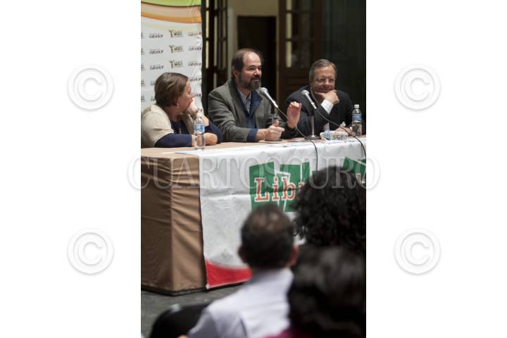 MÉXICO, D.F., 29FEBRERORO2012.- El escritor Juan Villoro, acompañado de Silvia Molina Coordinadora de Comunicación Interinstitucional y de Eduardo Clavé Coordinador de Fomento a la Lectura, participo en la Primera Tarde de Tertulias en el Palacio del Ayuntamiento del Distrito Federal. FOTO: GUILLERMO PEREA /CUARTOSCURO.COM