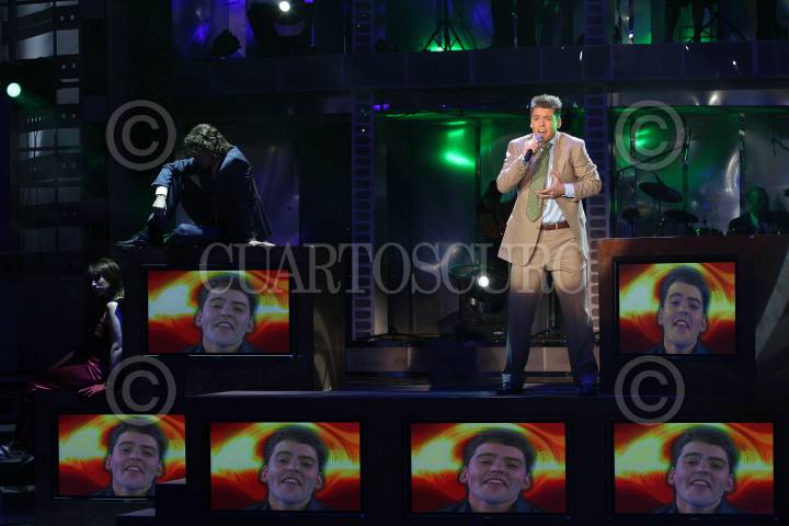 MÉXICO, D.F. 11SEPTIEMBRE2006.- Sebastián y Vince durante el duelo en el programa de televisión La Academia quinta generación realizado por T. V. Azteca. FOTO:Iván Stephens/CUARTOSCURO.COM