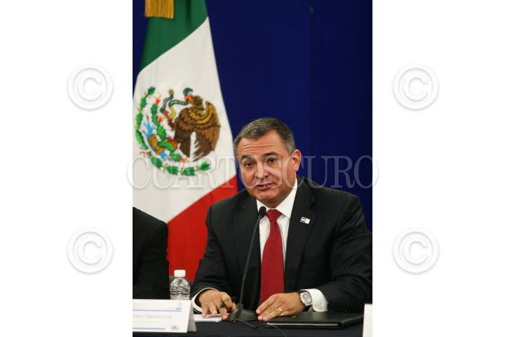 MÉXICO, D.F., 14ABRIL2009.- Genaro García Luna, secretario de Seguridad Pública, durante la conferencia donde anunció la cooperación entre la SSP federal y varias institutiones de educación universitaria. FOTO: ISAAC ESQUIVEL/CUARTOSCURO.COM