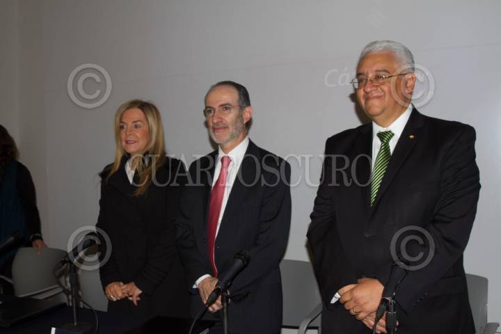 CIUDAD DE MÉXICO, 09FEBRERO2017.- Marcella Lembert, Vicepresidente de Responsabilidad Social Corporativa de Bank of America Merrill Lynch; Carlos Noriega, presidente de AMAFORE, y Carlos Cienfuegos, director de la facultad de Comunicación de la Universidad Anáhuac, firmaron un convenio para la cátedra de vinculación, para contribuir a la comunidad en lo relativo al ahorro para el retiro y sobre todo la educación finandiera. Como parte del acuerdo, se incluye: incentivar la unvestigación académica, además de promover y difundir una cultura financiera que esté enfocada al ahorro y la previsión. FOTO: MOISÉS PABLO /CUARTOSCURO.COM