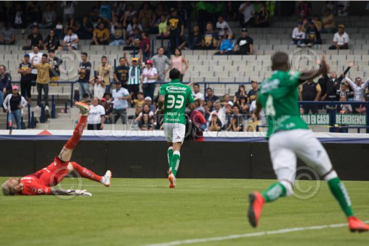 CIUDAD DE MÉXICO, 24FEBRERO2019.- Vinicio Angulo fue el autor del 3 gol de los Esmeraldas del León en partido que dispitaron en contra de los Pumas de la UNAM, quienes a pesar de estar en su casa solo lograron anotar un solitario gol. FOTO: MOISÉS PABLO /CUARTOSCURO.COM