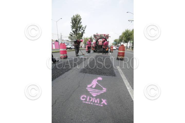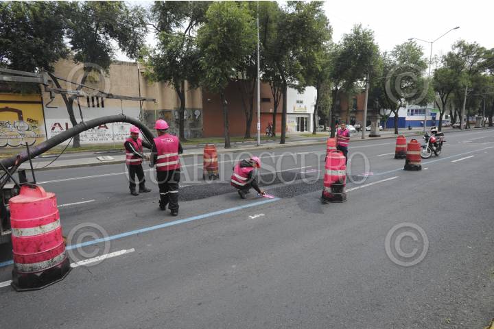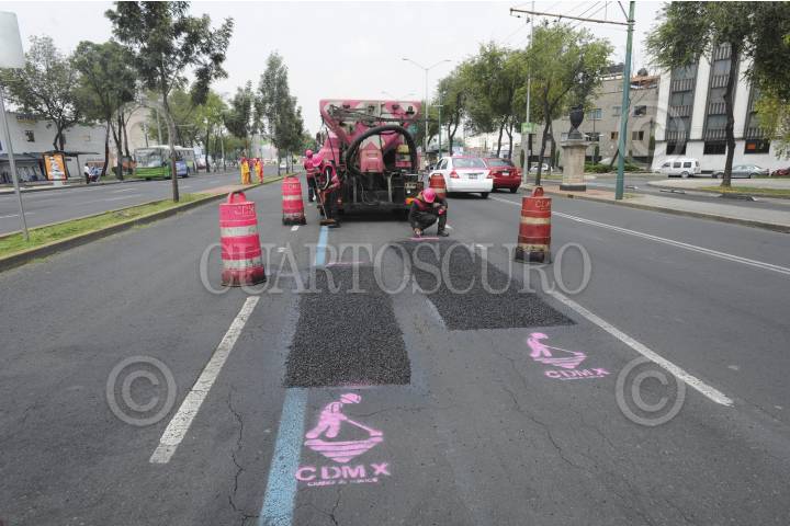 CIUDAD DE MÉXICO, 24AGOSTO2016.- Trabajadores de la ciudad trabajan bacheando avenida Reforma a la altura de Violeta, esto como parte de los preparativos para el próximo maratón. FOTO: ARMANDO MONROY /CUARTOSCURO.COM