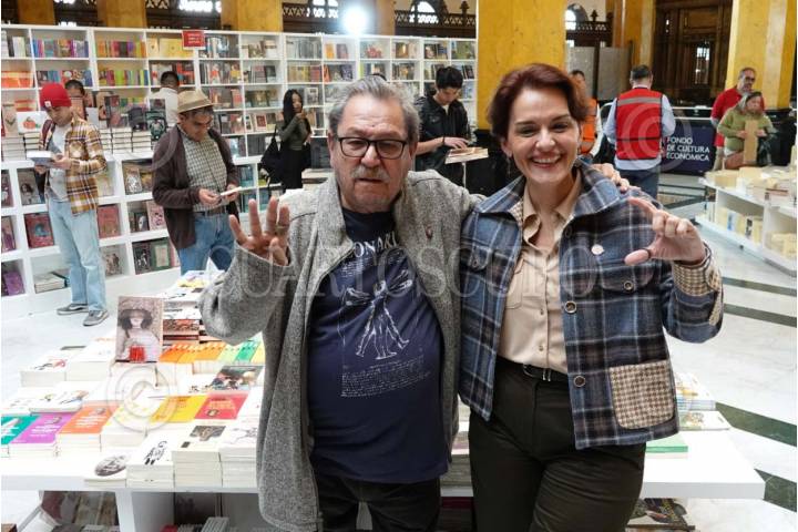 CIUDAD DE MÉXICO, 20FEBTERO2025.- Paco Ignacio Taibo II, director del Fondo de Cultura Económica, y Violeta Abreu González, directora del Servicio Postal Mexicano (Sepomex), durante la inauguración del tendido de libros “El Palacio Postal a Fondo” realizado en el Palacio Postal. FOTO: GRACIELA LÓPEZ/CUARTOSCURO.COM