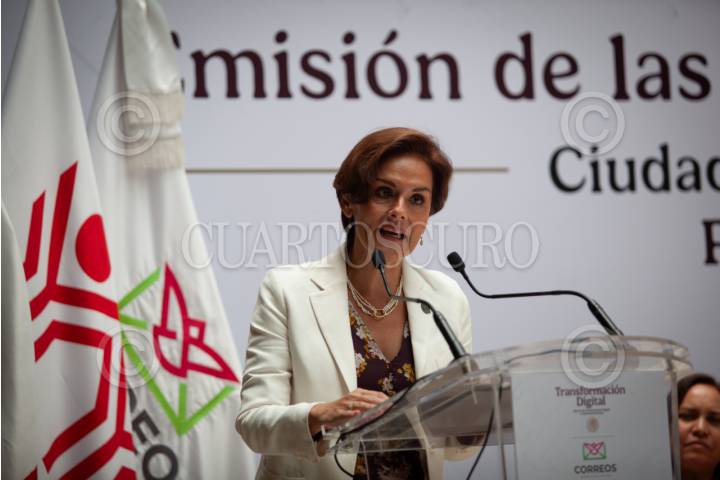 CIUDAD DE MÉXICO, 29JULIO2025.- Violeta Abreu González, directora del Palacio Postal encabezaron la cancelación de timbres postales “La vivienda es un derecho, no una mercancía”, y “Primera cimentación Infonavit Constructora”. FOTO: ANDREA MURCIA /CUARTOSCURO.COM