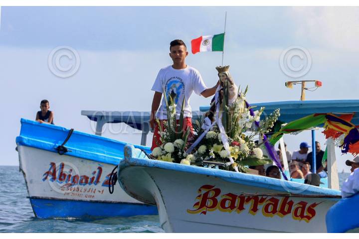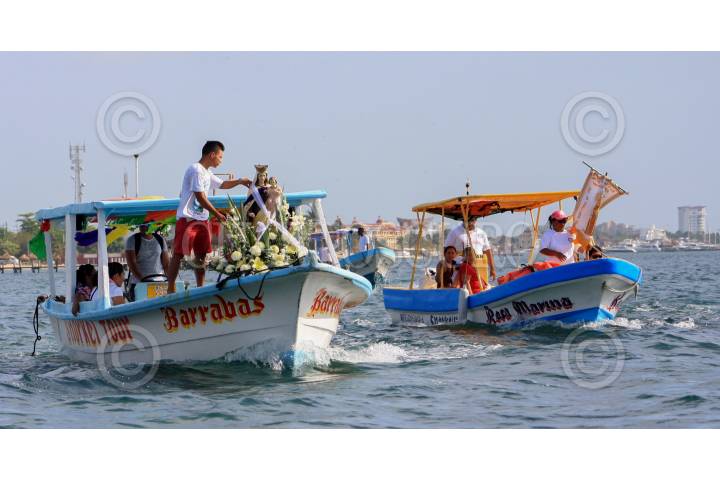 CANCÚN, QUINTANA ROO, 16JULIO2015.- Pescadores realizan una procesión en honor a la Virgen del Carmen. A bordo de una lancha llegaron hasta la iglesia del mismo nombre. FOTO: ELIZABETH RUIZ /CUARTOSCURO.COM