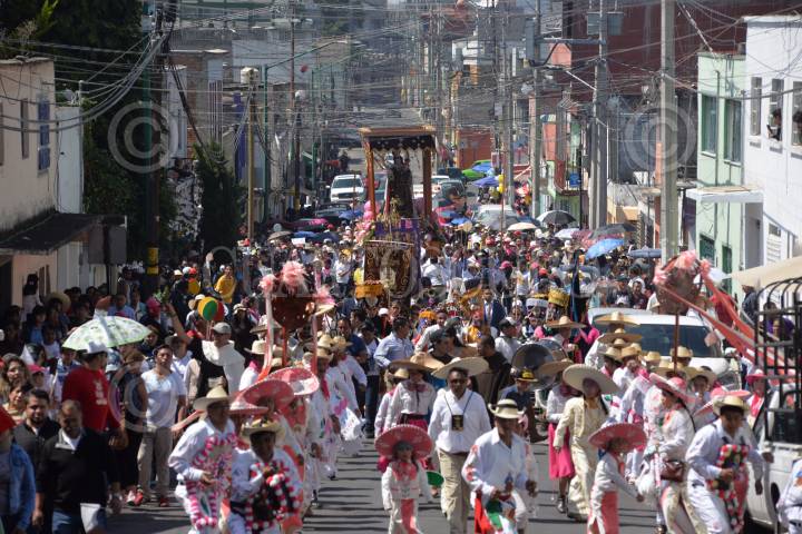 TOLUCA, ESTADO DE MÉXICO, 29JULIO2018.- Fieles católicos recorrieron las calles de Toluca con la imagen de la Virgen del Carmen, bailes de arrieros, música y alabanzas se escucharon durante el trayecto, culminado con esta procesión los festejos de la Virgen. FOTO: ARTEMIO GUERRA BAZ /CUARTOSCURO.COM